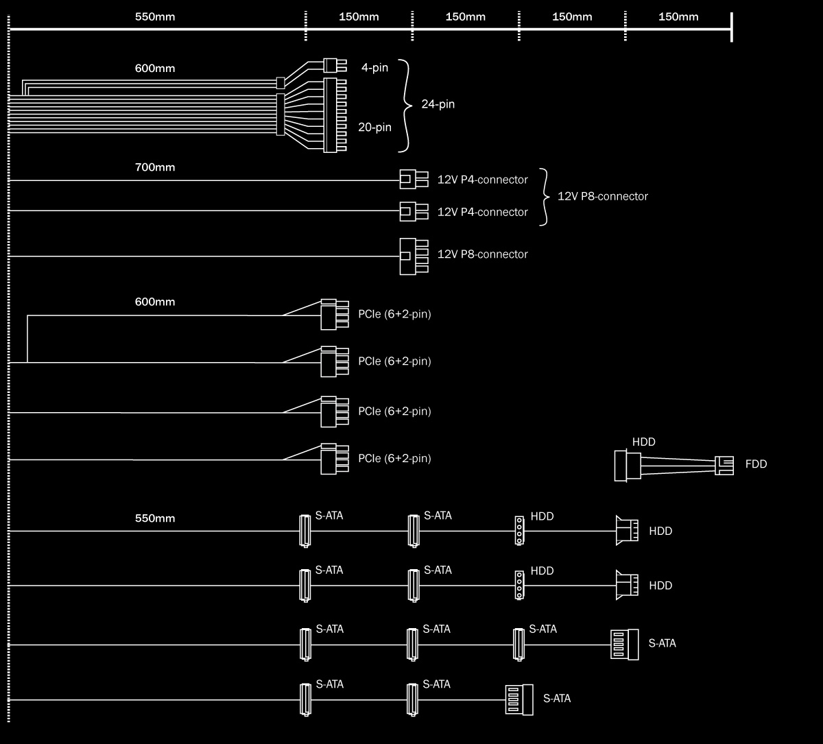 Kabellänge zu Mainboard (cm) 60