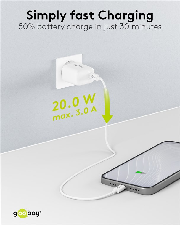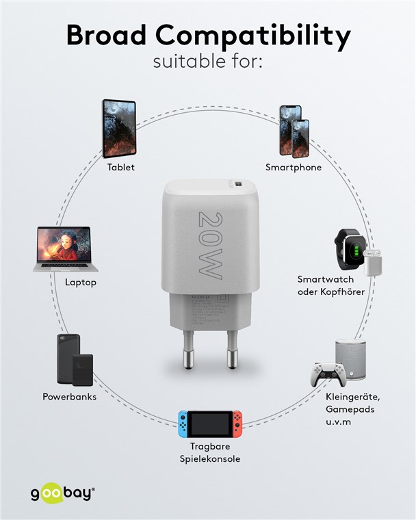 - Mit 20 W Leistung ist der Ladeadapter speziell auf kleine Geräte wie Smartphones, Bluetooth-Kopfhörer, Tablets oder Powerbanks zugeschnitten