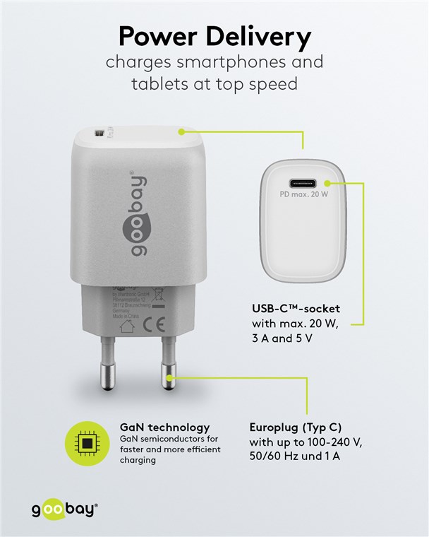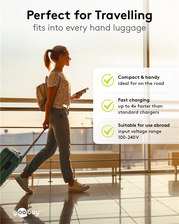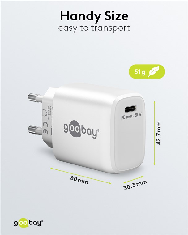 - Die kompakte und leichte Bauform passt in jede Tasche und macht das USB-C™-Netzteil zum praktischen Begleiter auf Reisen